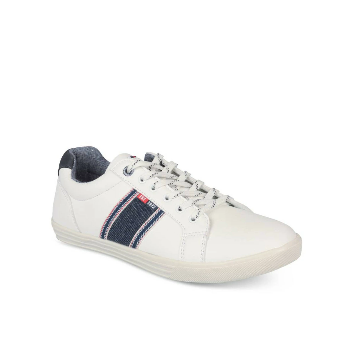 Facile à associer à toutes les tenues, la basket blanche est un must-have en toute saison. Ce modèle de ville est sublimé par des liserés en toile effet jean, un contrefort contrastant, et des lacets plats bicolores. Le col rembourré et la semelle épaisse procurent un confort parfait pour arpenter le béton urbain !