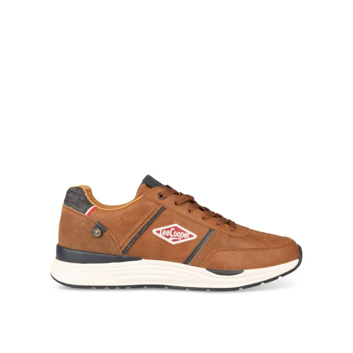 Pour un look urbain très tendance, optez pour cette basket marron de la marque Lee Cooper ! La semelle épaisse crantée et profilée lui confère une ligne sportive pour vous suivre dans toutes vos aventures quotidiennes. Des détails soignés sont apposés sur toute la basket : empiècements en toile effet jean, jeux de perforations et surpiqûres contrastées. Le logo Lee Cooper est présent sur la languette et la tige. Ce modèle se décline en coloris blanc.