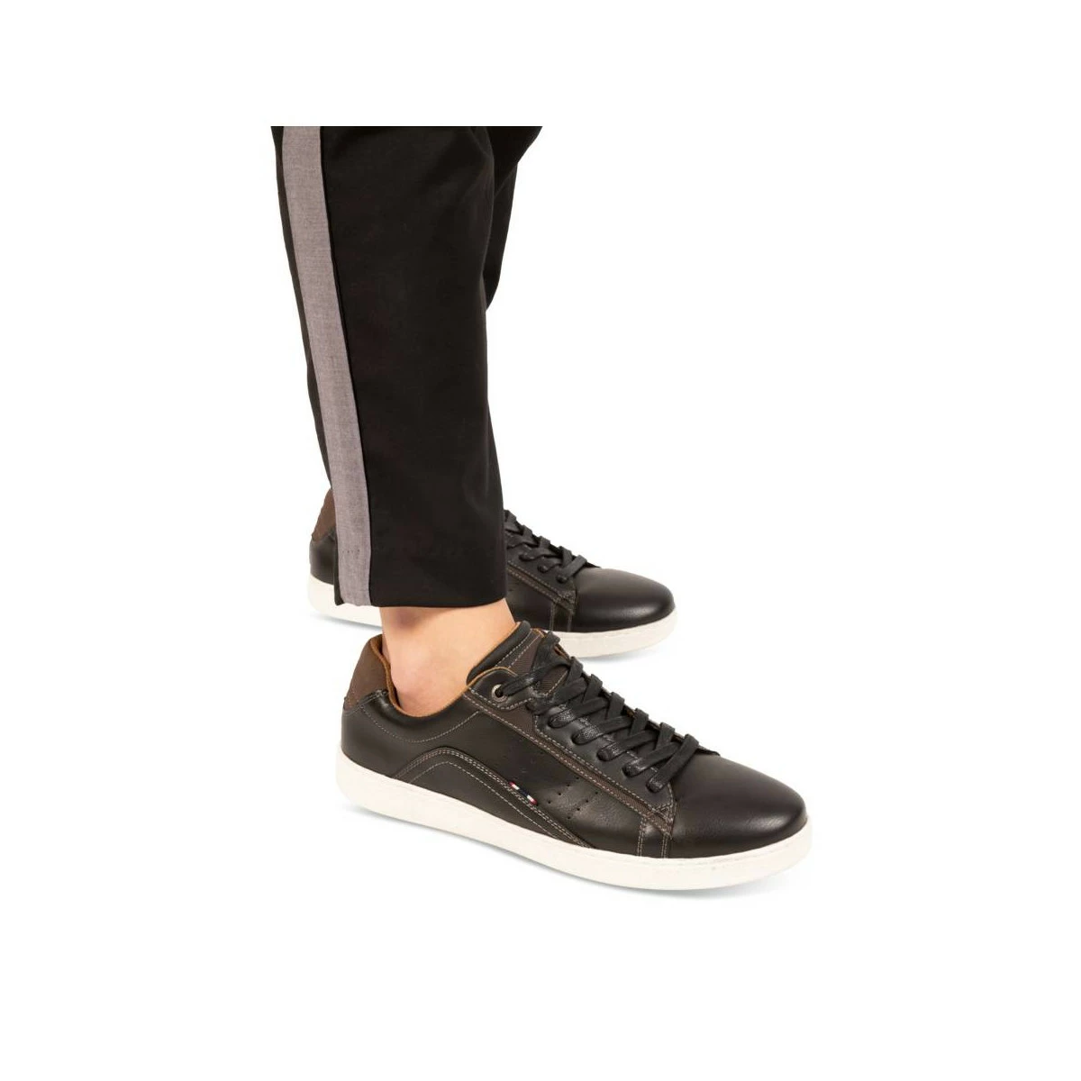 Cette basket de ville noire allie élégance et confort ! Empiècements, surpiqûres, perforations et mix matières apportent un beau relief à ce modèle. Sa semelle blanche épaisse et son col rembourré sont garants d’un bon confort de marche. C’est LA basket à adopter pour vos tenues quotidiennes ! Elle se décline aussi en coloris bleu marine.