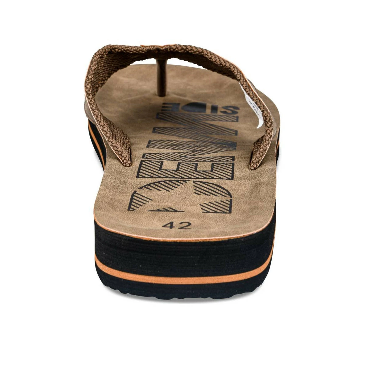 En été, on pense à adopter la tong ! Ce modèle marron est doté d’une bride en tissu et d’une semelle épaisse bicolore, souple et légère. Cette tong complétera parfaitement une tenue décontractée, à la plage, à la piscine, ou même en ville ! Elle se décline également en coloris noir.