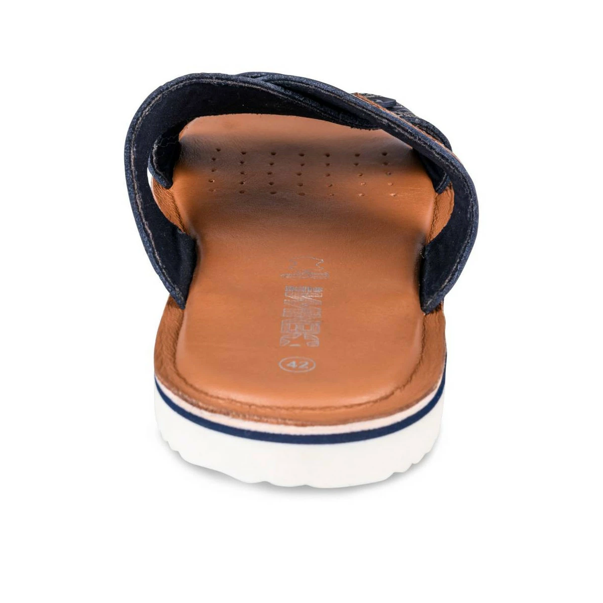 En été, les messieurs aussi ont droit à leur paire de mules ! Ce modèle bleu marine à brides croisées est aussi élégant que pratique. Il est doté de détails soignés et est composé en cuir véritable. La mule est montée sur une semelle épaisse, pour un bon confort de marche. A porter avec un bermuda ou un jean !